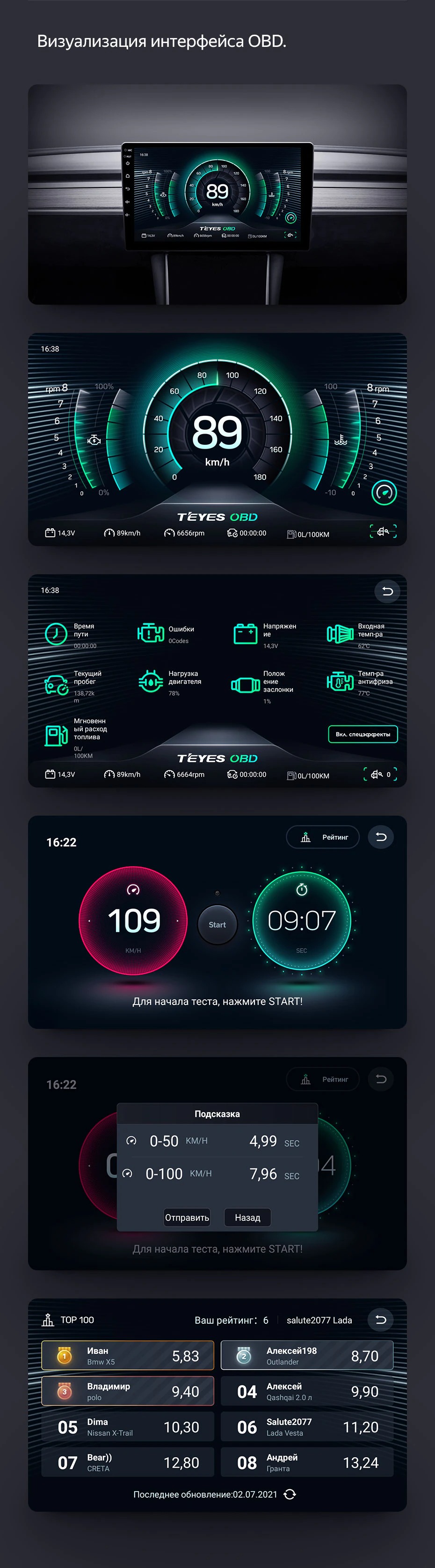 Что показывает адаптер Teyes OBD2?