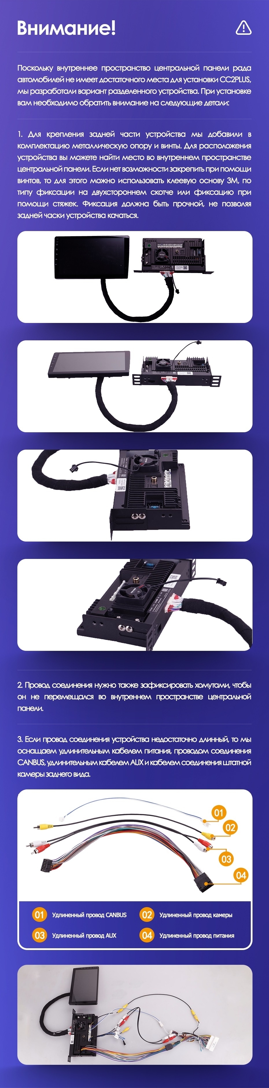 Только в линейке СС3 реализовано программное обеспечение, которое отображает трёхмерную картинку движения автомобиля. Благодаря установленному трёхосному датчику гироскопа на дисплее магнитолы отображается автомобиль в 3D-плоскости (доступны повороты 360о, динамические данные).