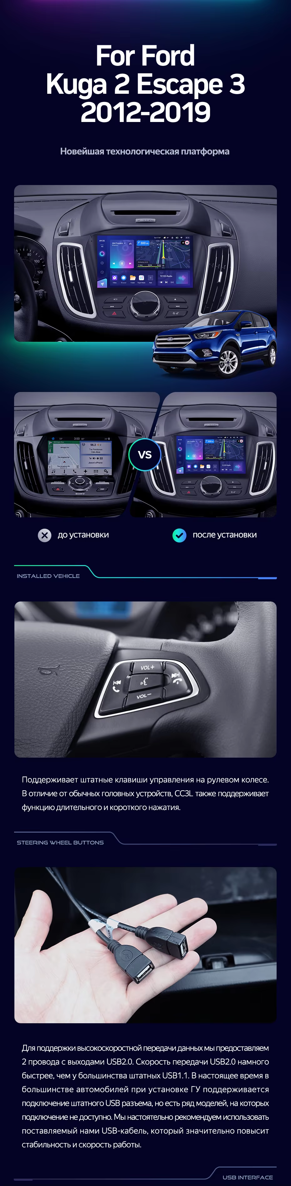 Штатная магнитола Teyes CC3L 4/32 Ford Kuga 2 (2012-2019) Тип-B - купить всего за 32 000 руб. в интернет-магазине в Сургуте Teyes.com.ru. ✓ Самый лучший выбор мультимедиа ✓ Лучшая замена штатному ГУ ✓ Тел. +7 (800) 775-31-74