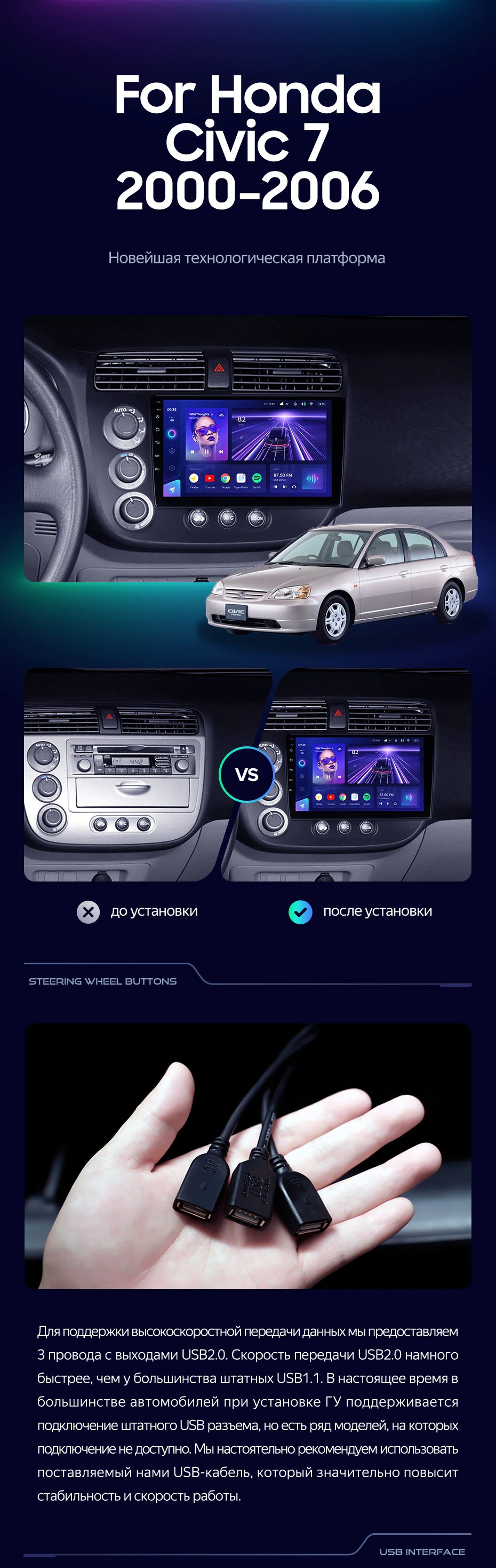 Штатная магнитола Teyes CC3L 4/32 Honda Civic 7 (2000-2006) F1 - купить всего за 28 500 руб. в интернет-магазине в Сургуте Teyes.com.ru. ✓ Самый лучший выбор мультимедиа ✓ Лучшая замена штатному ГУ ✓ Тел. +7 (800) 775-31-74
