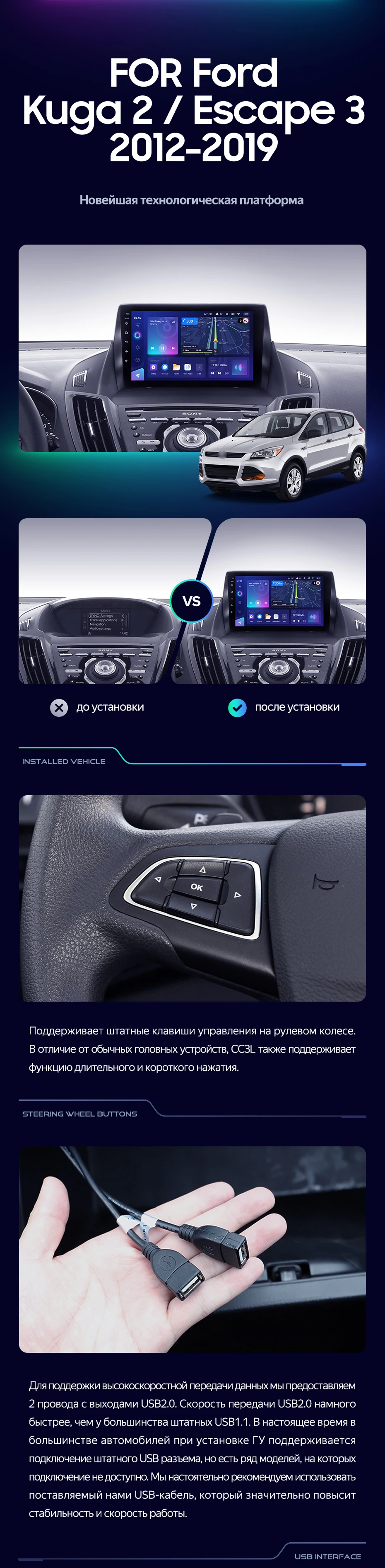 Штатная магнитола Teyes CC3L 4/64 Ford Escape 3 (2012-2019) Тип-A - купить всего за 31 500 руб. в интернет-магазине в Сургуте Teyes.com.ru. ✓ Самый лучший выбор мультимедиа ✓ Лучшая замена штатному ГУ ✓ Тел. +7 (800) 775-31-74