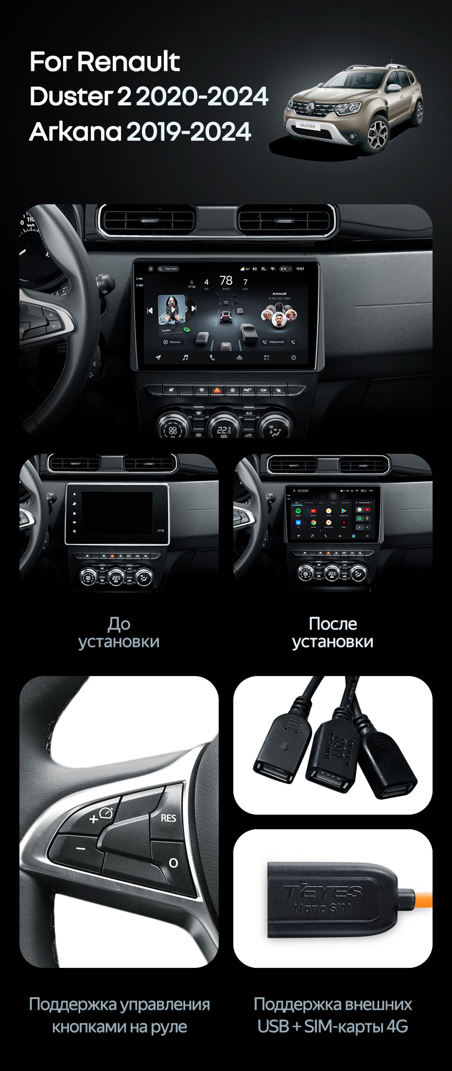Штатная магнитола Teyes CC4 6/64 Renault Duster HM 2 (2020-2023) F1 - купить всего за 49 770 руб. в интернет-магазине в Сургуте Teyes.com.ru. ✓ Самый лучший выбор мультимедиа ✓ Лучшая замена штатному ГУ ✓ Тел. +7 (800) 775-31-74