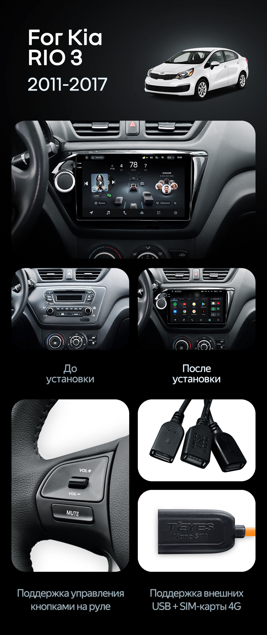Штатная магнитола Teyes CC4 Pro 8/128 Kia Rio 3 (2011-2017) - купить всего за 57 780 руб. в интернет-магазине в Сургуте Teyes.com.ru. ✓ Самый лучший выбор мультимедиа ✓ Лучшая замена штатному ГУ ✓ Тел. +7 (800) 775-31-74