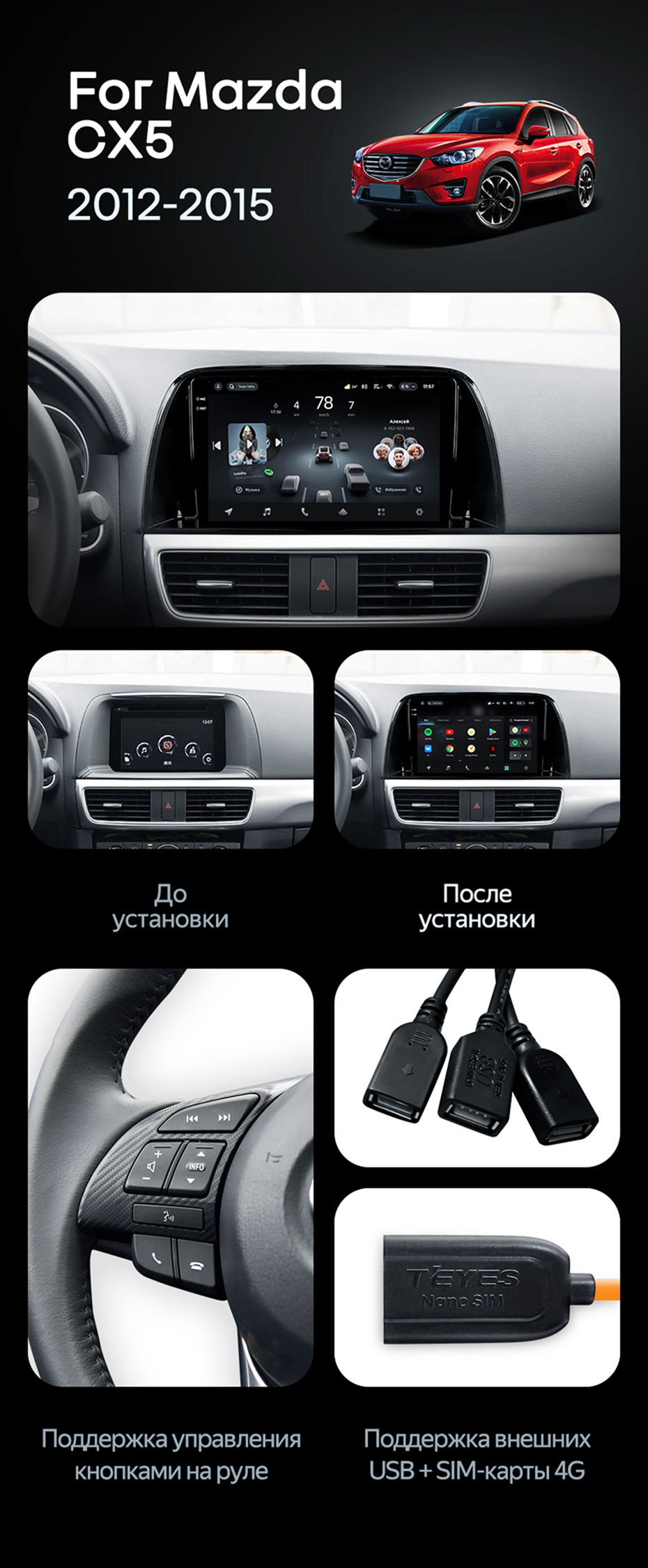 Штатная магнитола Teyes CC4 Pro 8/128 Mazda CX-5 (2012-2015) Тип-A - купить всего за 58 880 руб. в интернет-магазине в Сургуте Teyes.com.ru. ✓ Самый лучший выбор мультимедиа ✓ Лучшая замена штатному ГУ ✓ Тел. +7 (800) 775-31-74