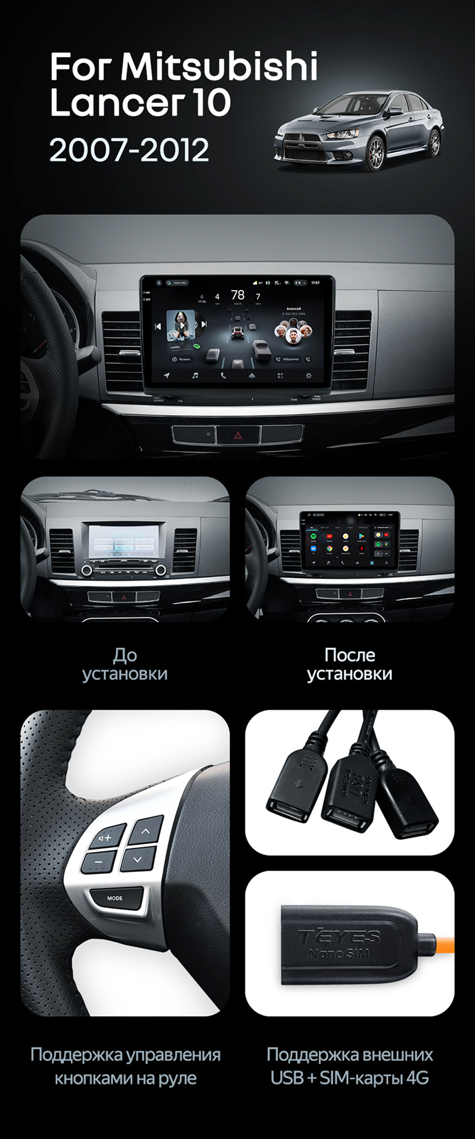 Штатная магнитола Teyes CC4 Pro 8/128 Mitsubishi Lancer 10 CY (2007-2012) Тип-A - купить всего за 57 770 руб. в интернет-магазине в Сургуте Teyes.com.ru. ✓ Самый лучший выбор мультимедиа ✓ Лучшая замена штатному ГУ ✓ Тел. +7 (800) 775-31-74