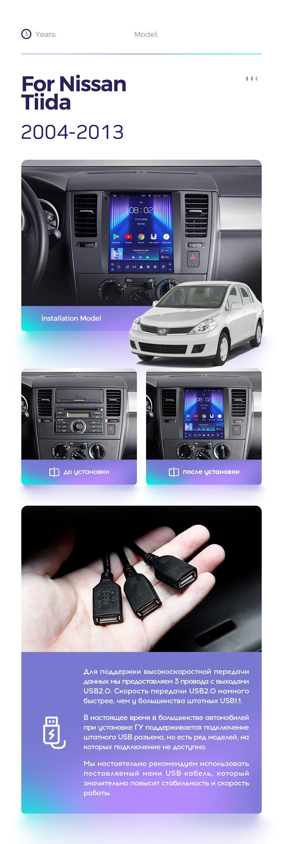 Полный комплект установки магнитолы Teyes с рамкой и проводкой можно выбрать в каталоге штатных магнитол Nissan Tiida C11 2004-2013.